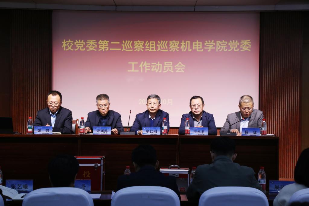 根据四届校党委第二轮巡察工作安排部署,10月28日,校党委第二巡察组巡察机械电子工程学院党委工作动员会在机电学院楼202报告厅召开。校党委第二巡察组组长牟仁刚作动员讲话、学院党委书记陈猛作表态发言。意识形态工作专项巡察组组长王永君,第二巡察组副组长宋西路及成员李建楠、李冬、张艺曦、展晓琳、范轲出席会议。机电学院全体教职工、退休教师代表和学生代表参加会议,陈猛主持会议。