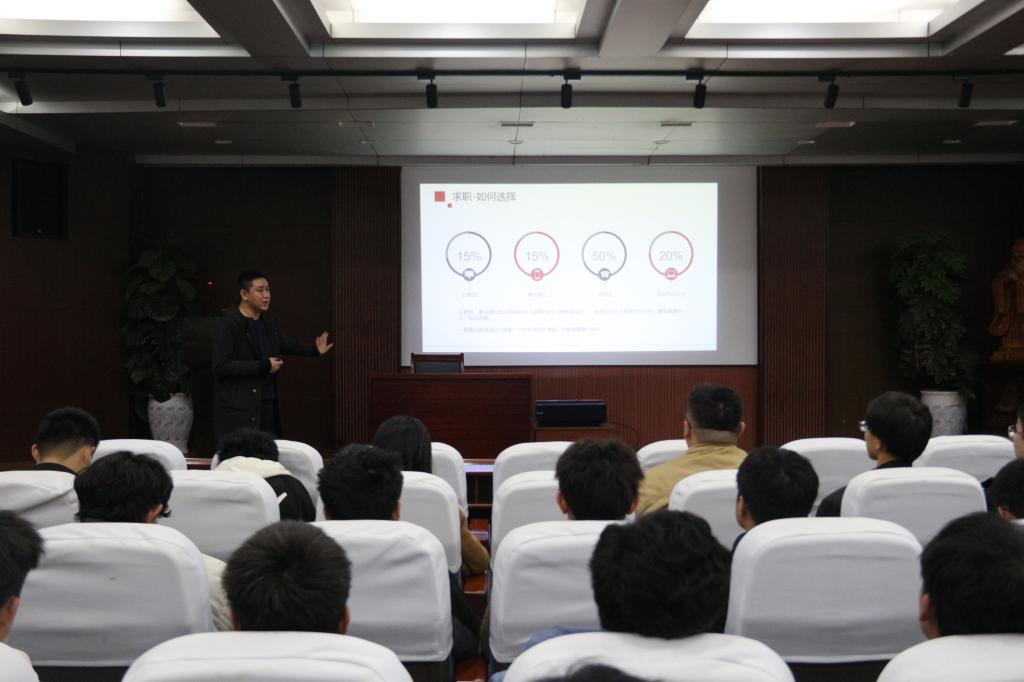 考虑到机电学院作为工科类院系的专业特色,以及本校学子的求职需求,分享会尾声,马老师还针对性地推荐了一批适配工科专业的央国企岗位,并简要介绍了这些企业的招聘偏好与人才需求方向,为同学们的求职目标定位提供了极具价值的参考。