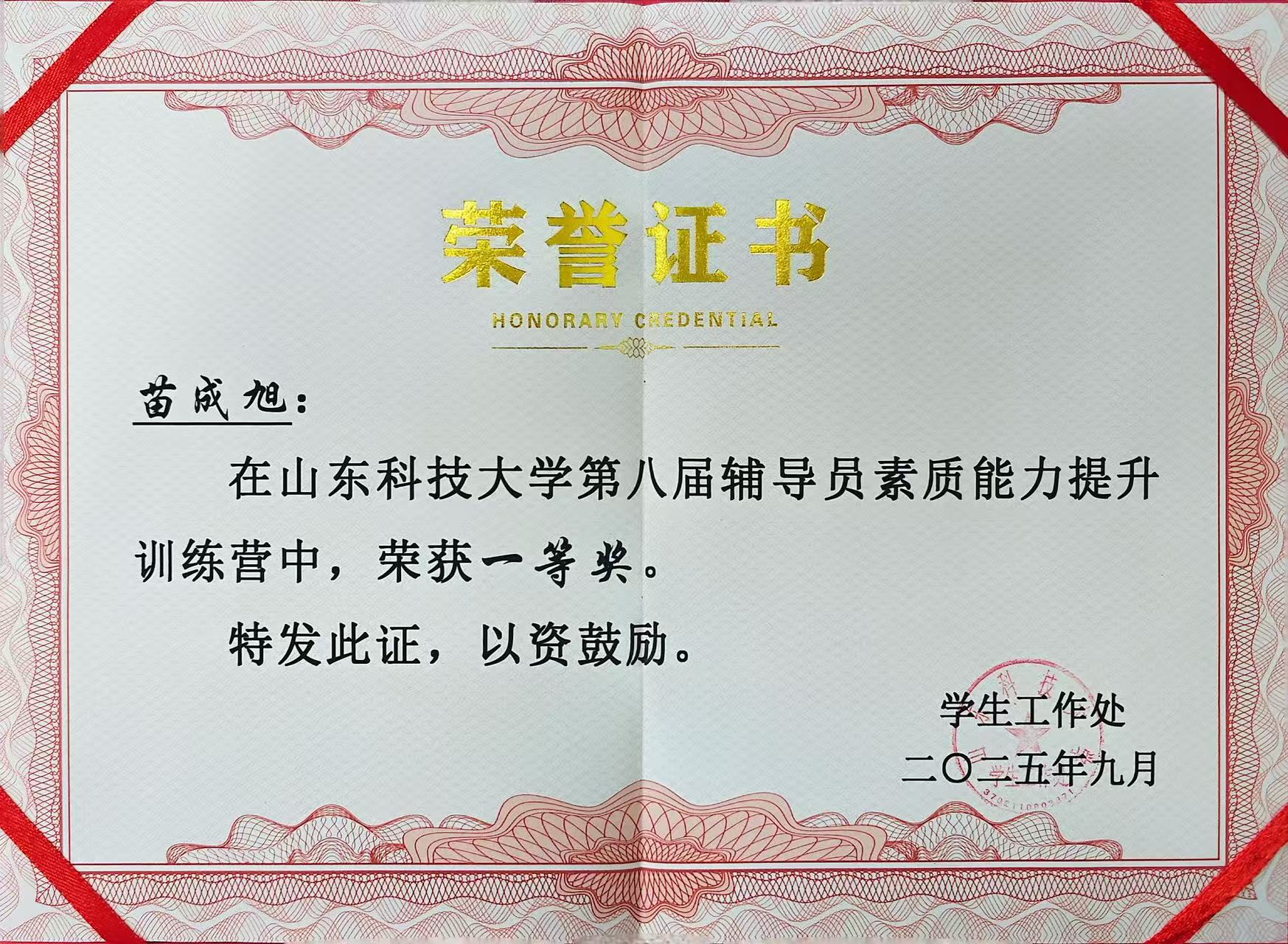 苗成旭获山东科技大学辅导员素质能力大赛一等奖