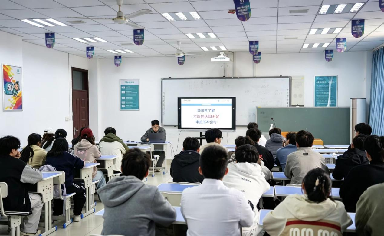 点击:为深化创新创业教育改革,全面提升学生科创能力与实践素养,4月14日下午,机电学院在J8-313教室成功举办2026年大学生创新创业训练计划专题培训会。本次活动由学院辅导员及2025年国创项目优秀负责人主讲,2026年大创计划指导教师、项目团队成员共同参与。