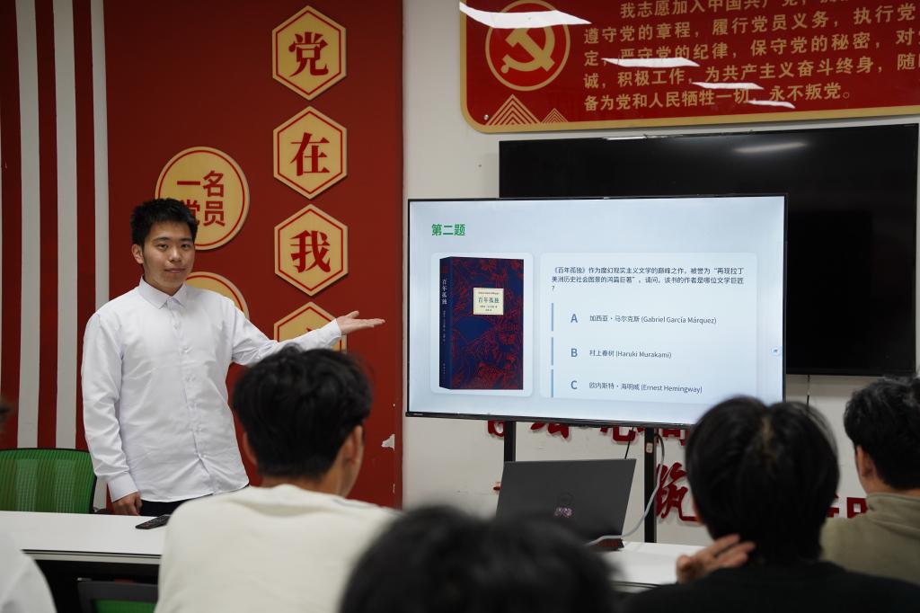 活动分为自主分享与趣味问答两个主要环节。分享环节中,同学们自愿登台,结合自身阅读经历,通过朗读经典段落、解读书籍内容与交流心得体会等形式,展示了涵盖文学名著、社科经典、科技读物及人物传记的多元阅读成果,现场交流深入、气氛融洽。随后的趣味问答环节设置了作品作者匹配、经典名句猜书等抢答题型,同学们踊跃思考、积极抢答,将现场氛围推向高潮。问答结束后,得分最高的同学获颁“阅读之星”奖状,为活动增添了仪式感。